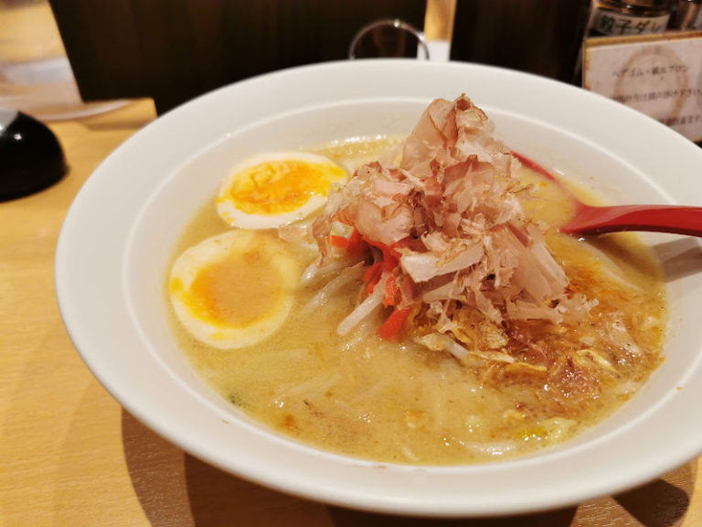 味噌味のうえ、かつおぶしの風味も感じ、和風ラーメンといったかんじでした。ご飯が欲しくなる味だなと思いました。メニューにミニチャーハンもあったので、一緒に食べるとまたおいしさ倍増しそうですね。