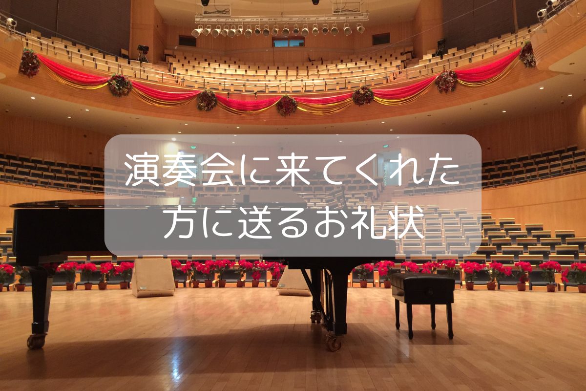今回は、ピアノやヴァイオリンなど楽器の発表会や演奏会を見に来てくれた方に送る、お礼状の書き方と例文をご紹介します。